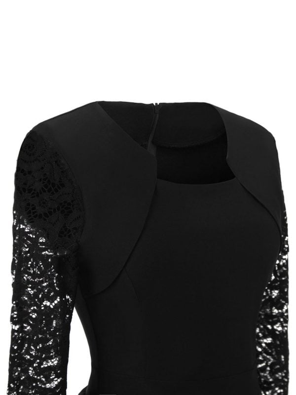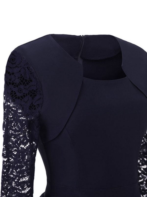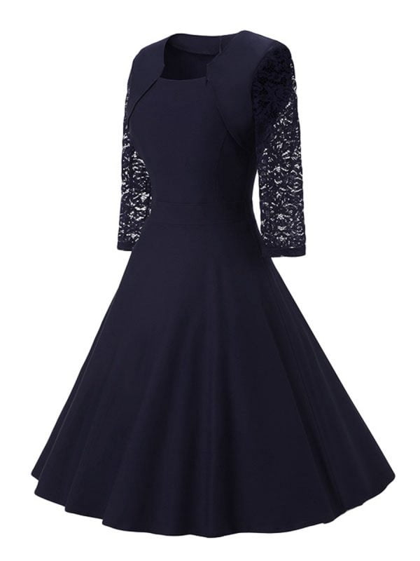 Retro Round Neck Sleeveless Lace Stitching Print Dress