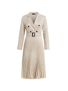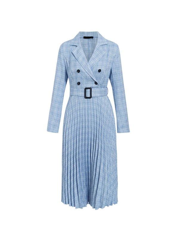 Features: This long sleeve mini dress is excellent in your daily life. v-neck. double button. a-line. pleated skirt of bottom. as a blazer dress. slim fit style. match with belt. shows your waist curve