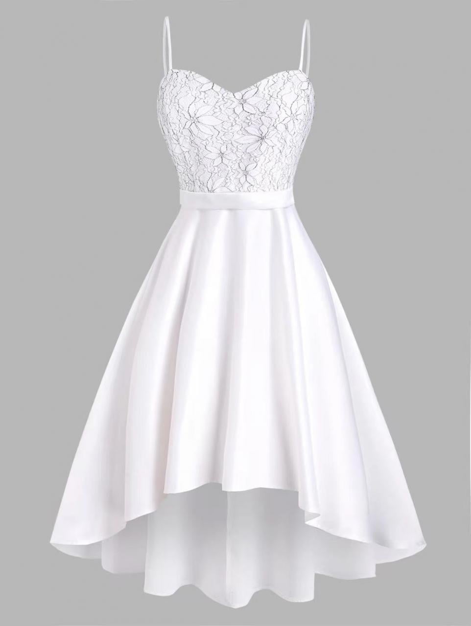 Elegant White Dresses High Low Hem Spaghetti Strap Dresses