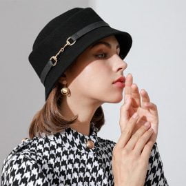 The cute bucket hats made from faux fur. ultra-soft and comfortable; The unique metal belt decoration and dome design make this hat more refined and smaller;