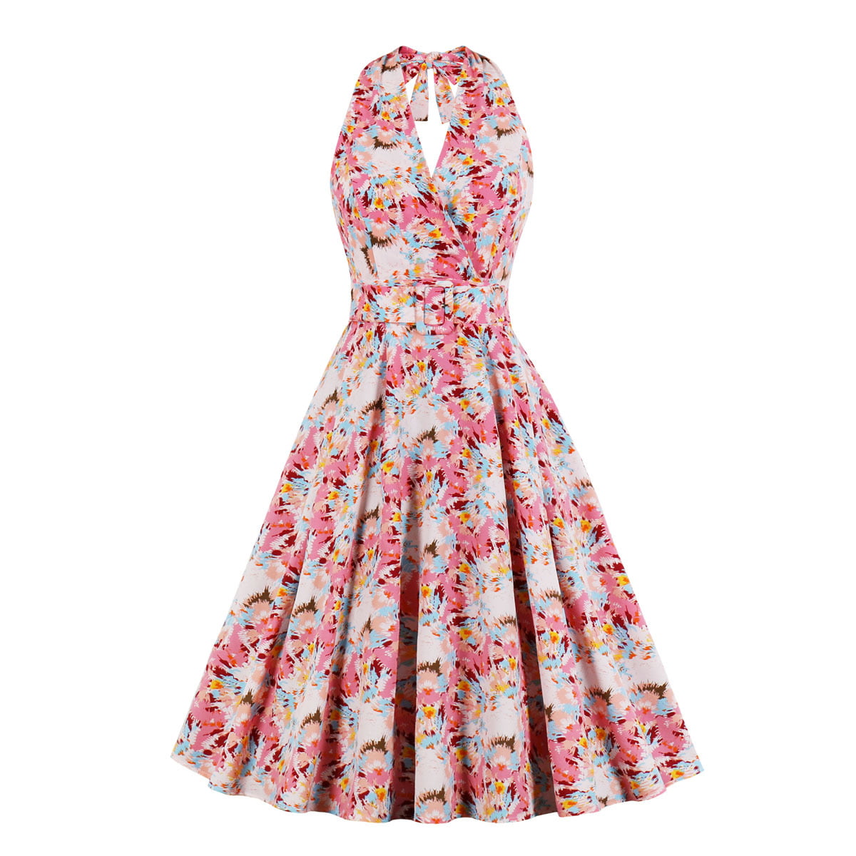 Categories: 1950s Dresses, Floral Dress, Halter Dress, Swing Dresses