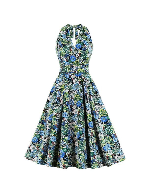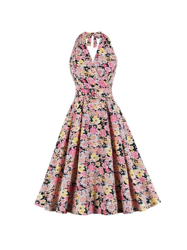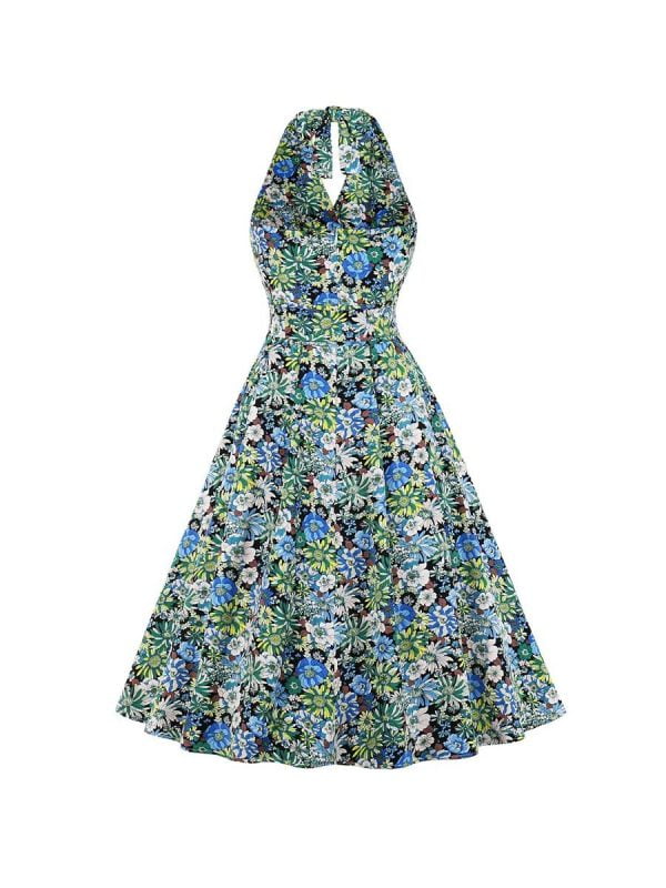 Categories: 1950s Dresses, Floral Dress, Halter Dress, Swing Dresses