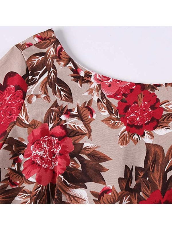 vintage-dress-print-seven-points-sleeve-puff-dress