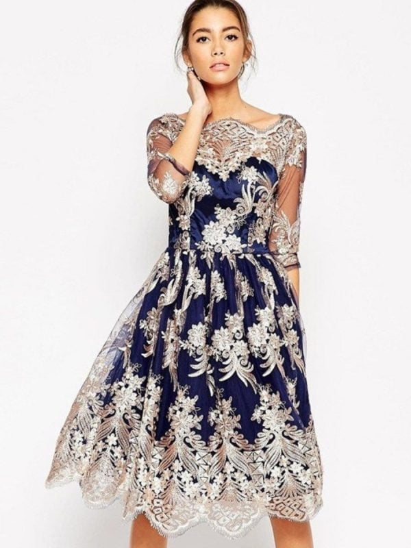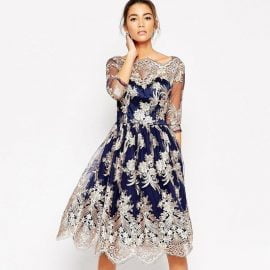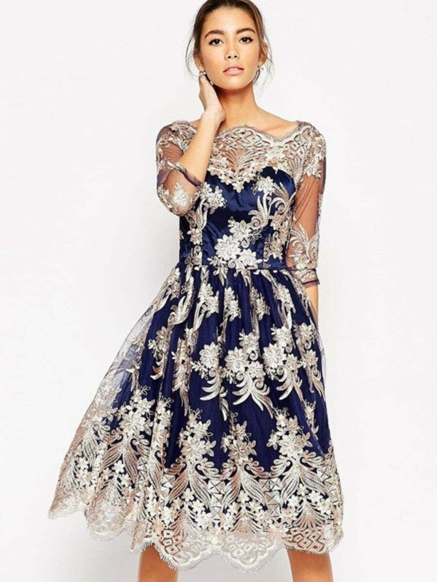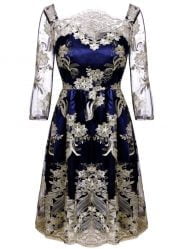 Floral Dresses For Wedding Retro Embroidered Lace Mesh Swing Dresses