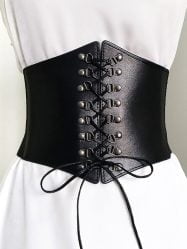 Girdle For Women Lace-up Elastic Rivet Punk Style Vintage Corset Belt