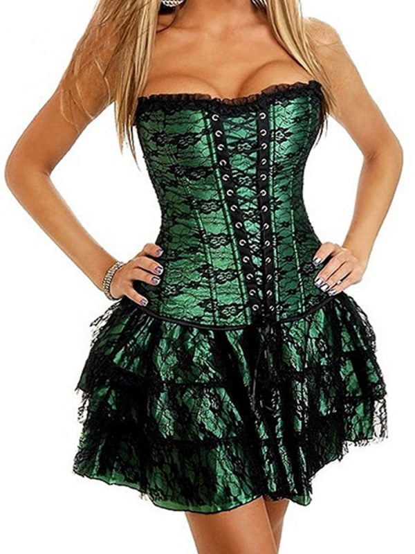 Halloween Costume Sexy Gothic Lace Drawstring Steampunk Corset Dress