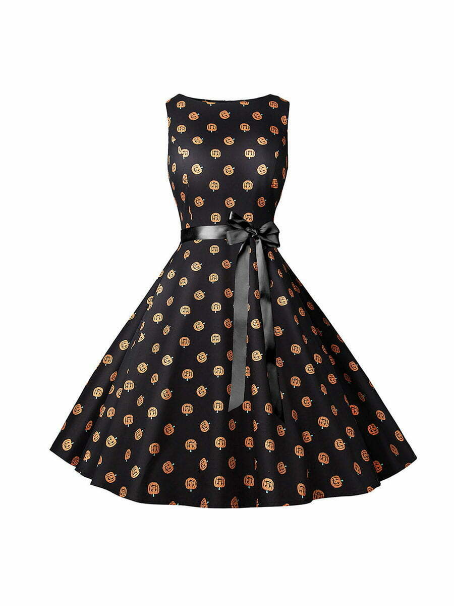 Swing Dresses Retro Pattern Sleeveless Party Dress for Women