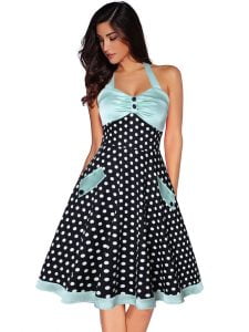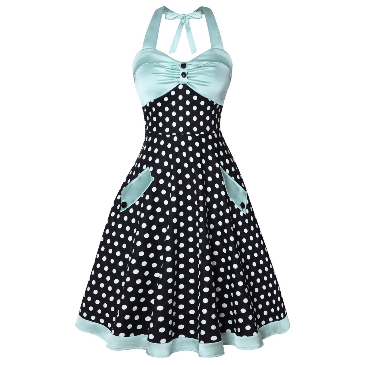 Halter Dresses For Women Retro Polka Dot Swing Dress