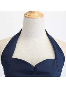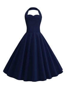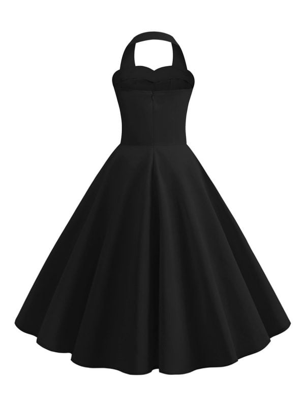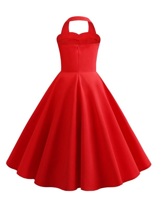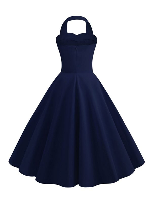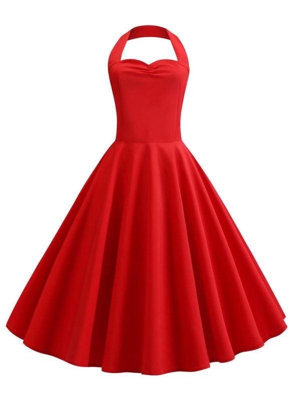 1950s-halter-neck-dress-simple-solid-color-a-line-dress