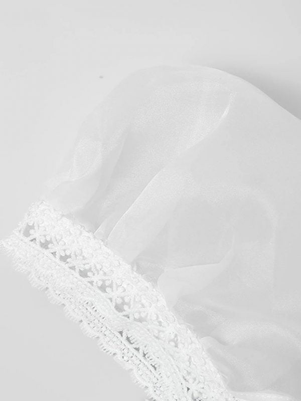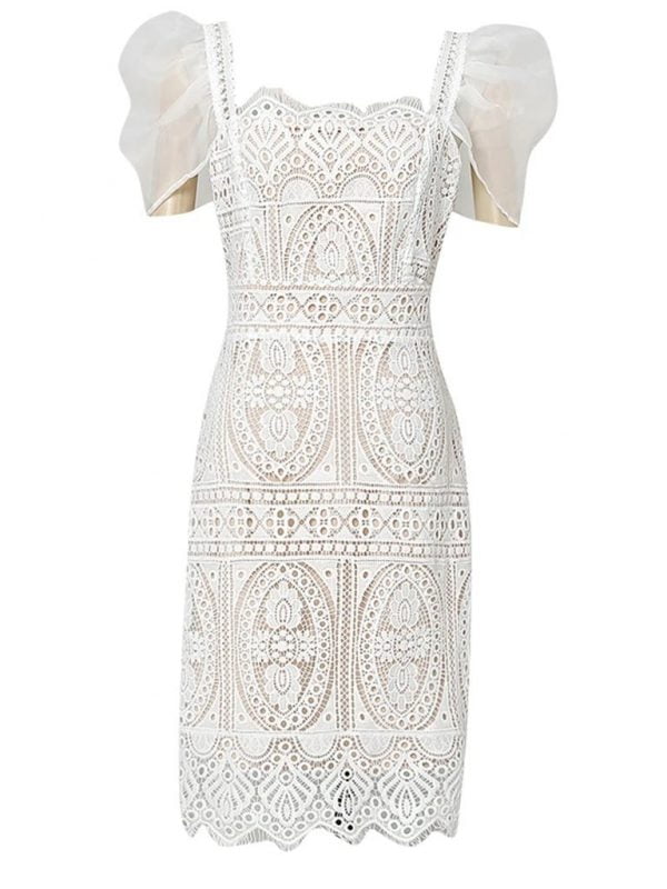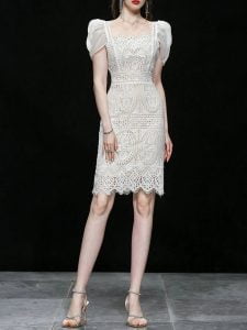 Lace Dress For Women Puff Sleeve Square Neck Slim Midi Dress
