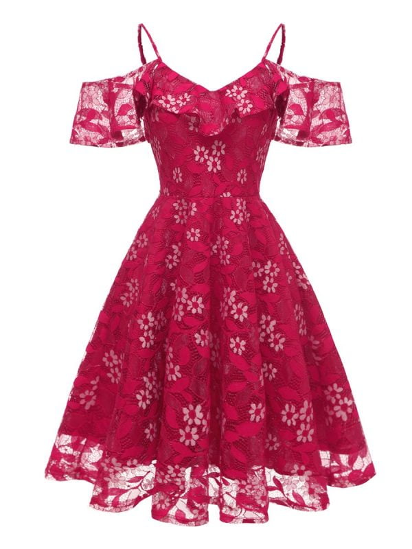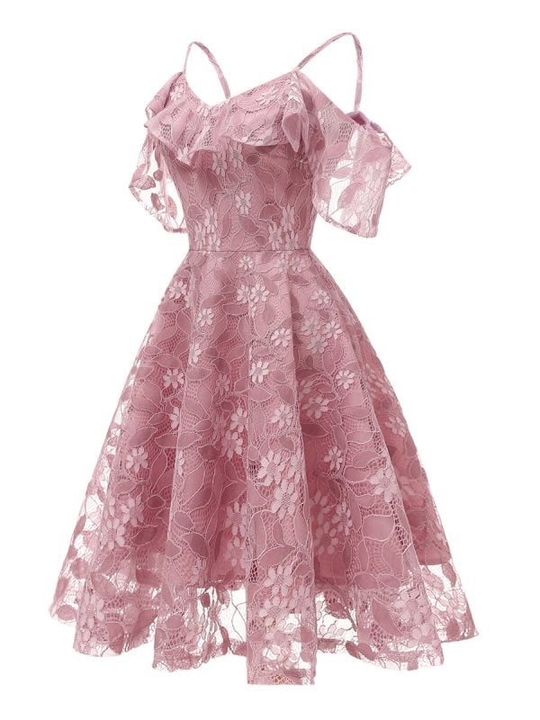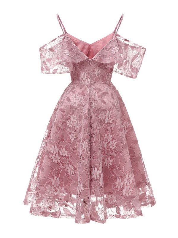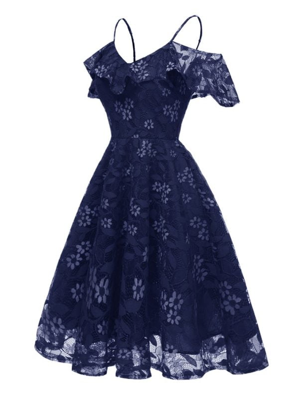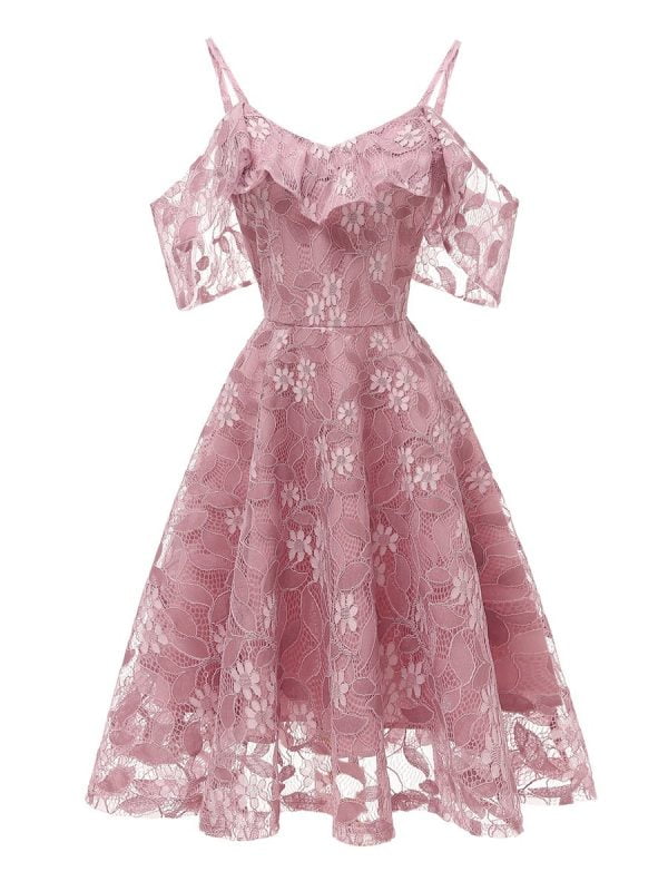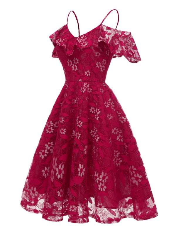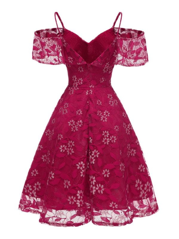 1950s Dress Women’s Lace Dress Solid Color Elegant A-Line Dress