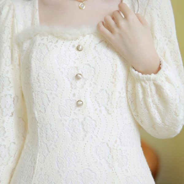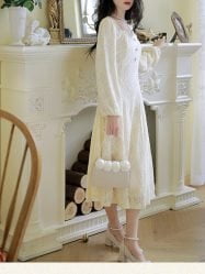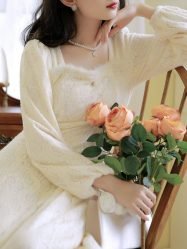 The unique lace embroidery makes this skirt look exquisite and luxurious; The square collar and raw edges design highlight your charming neck curve;