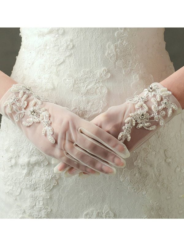 Lace Gloves Rhinestones Elegant Bride Gloves for Wedding Party
