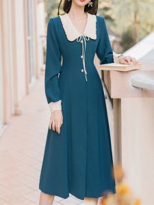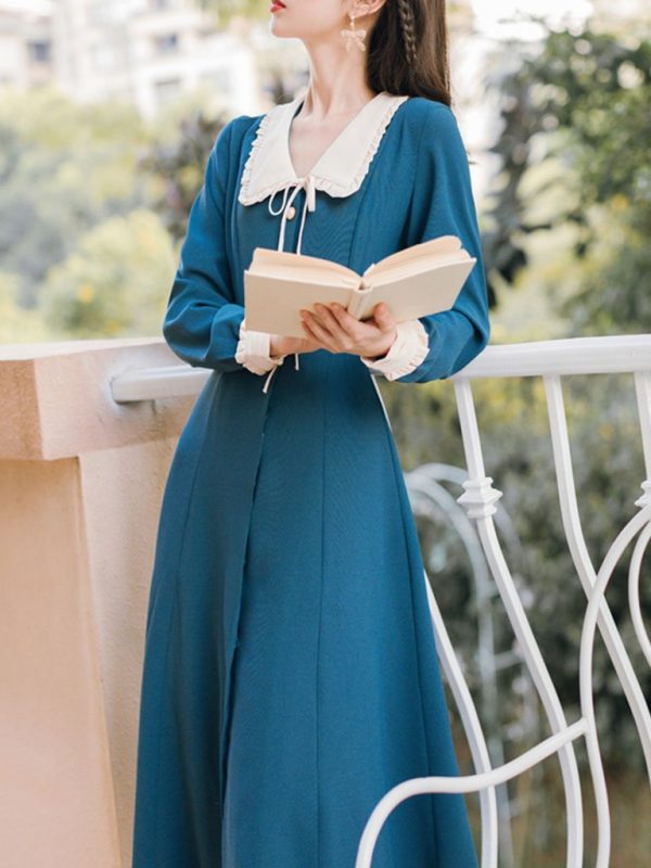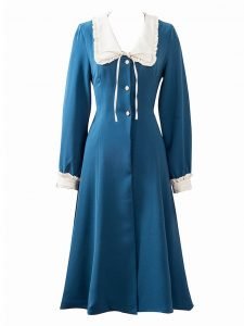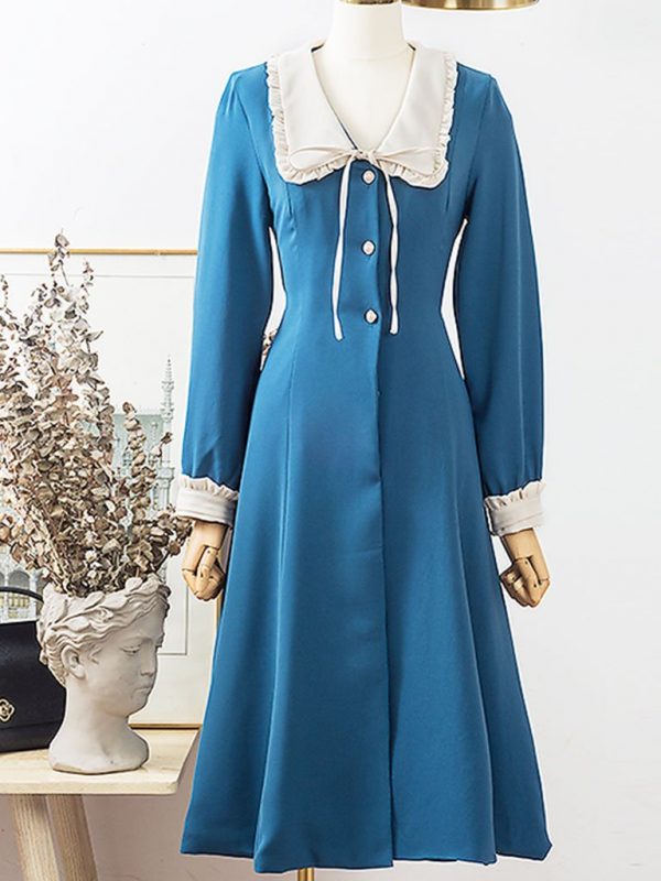 Lake Blue Chelsea Collar Vintage Long Sleeve Fall 50S Dress