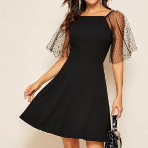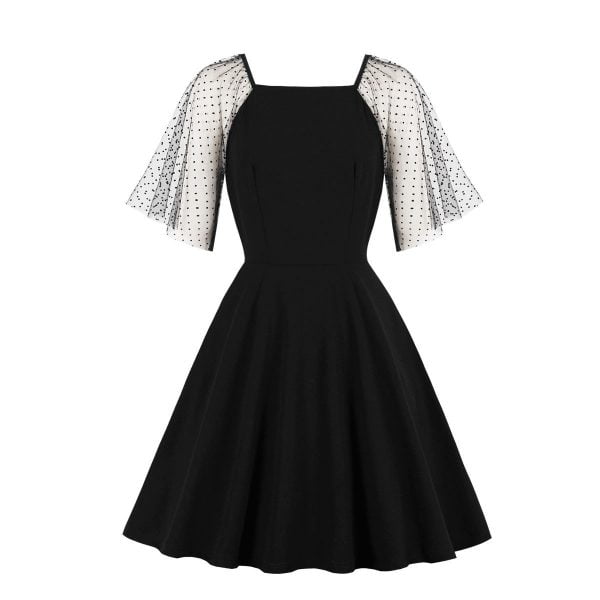 Little Black Dress Mesh Short Sleeve Elegant Dress