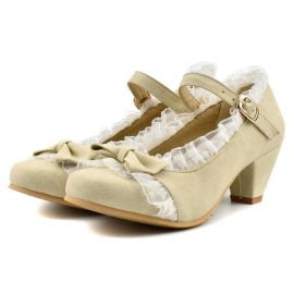 Mary Jane Shoes Round Toe Bowknot Lace Patchwork Shallow High Heels