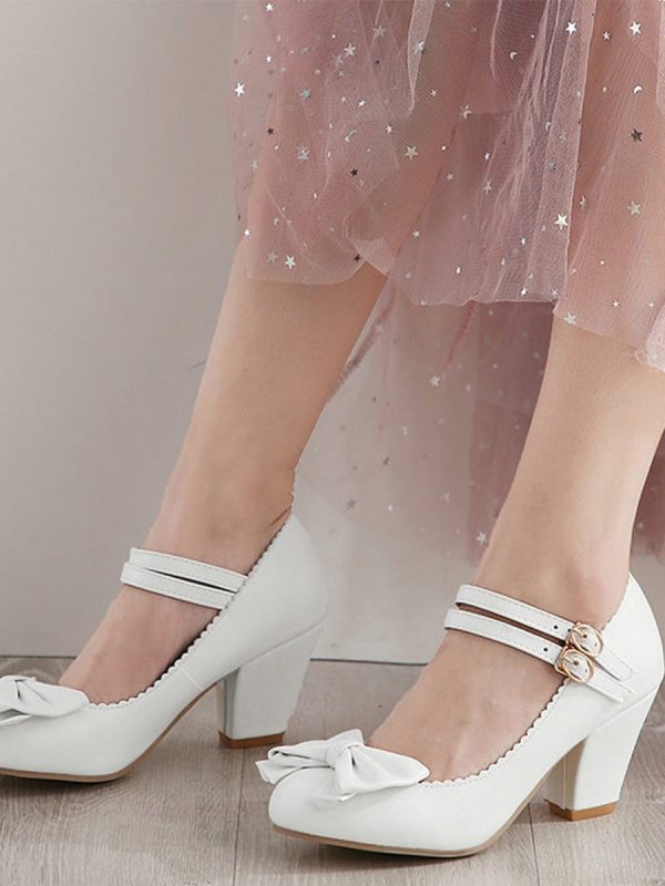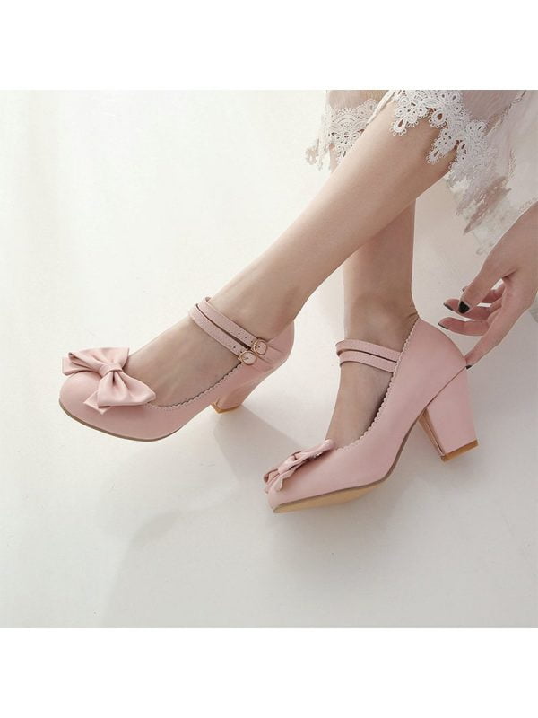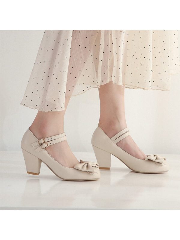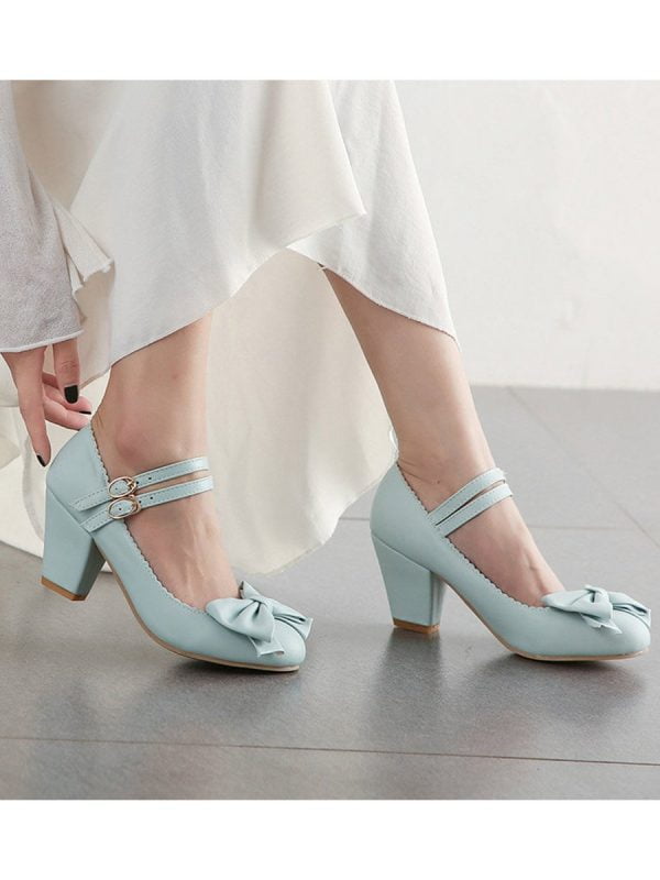 Mary Janes Pumps Elegant Double Strap Bowknot High Heels