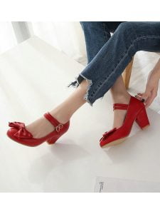 Chunky Heels Round Toe Retro Red High Heels