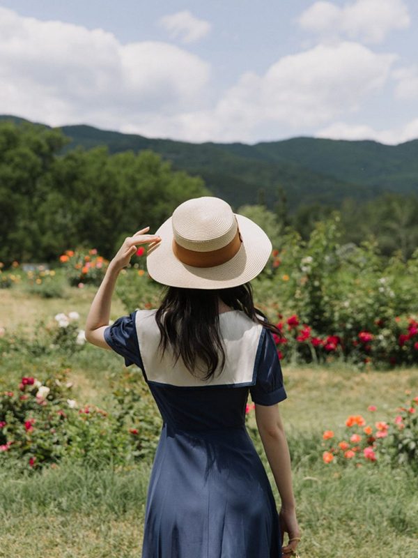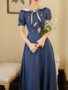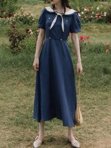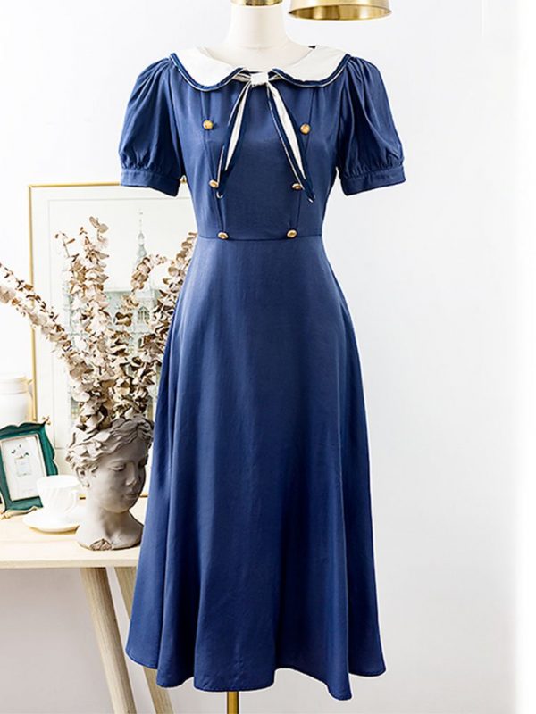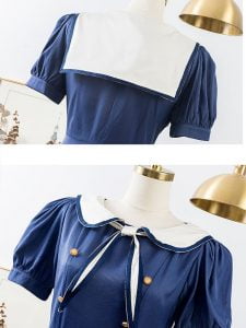 navy-blue-sailor-collar-puff-sleeve-swing-dress