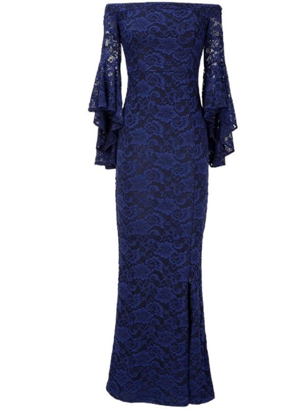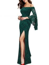Off The Shoulder Dress Lace Flared Sleeves Split Maxi Dress