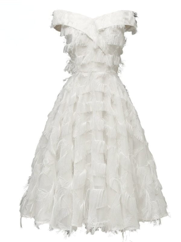 Off The Shoulder Dresses Feather Tassel Aline Swing Midi Dress
