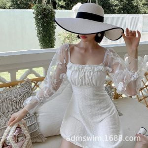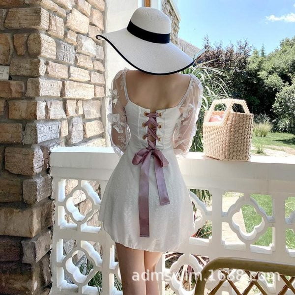 Features: This elegant swimming dress. with lace butterfly sleeves. strappy bowknot bandage. and tummy control design. which all make this dress more attractive and beautiful;