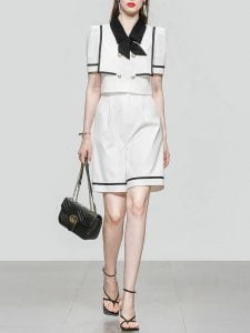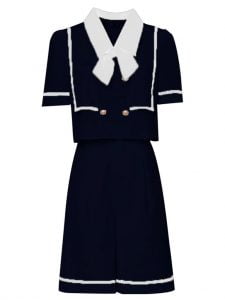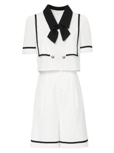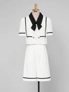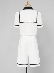 Pantsuits For Women Navy Collar Double-breasted High Waist Pants Set