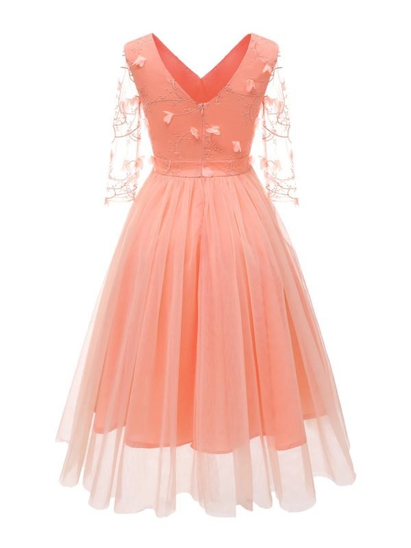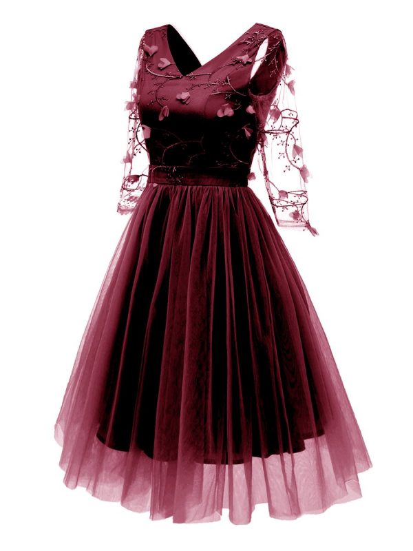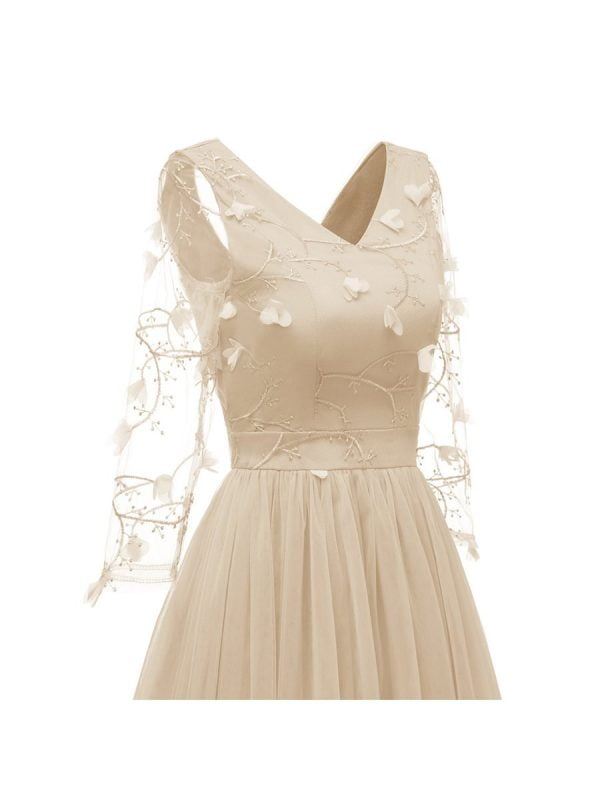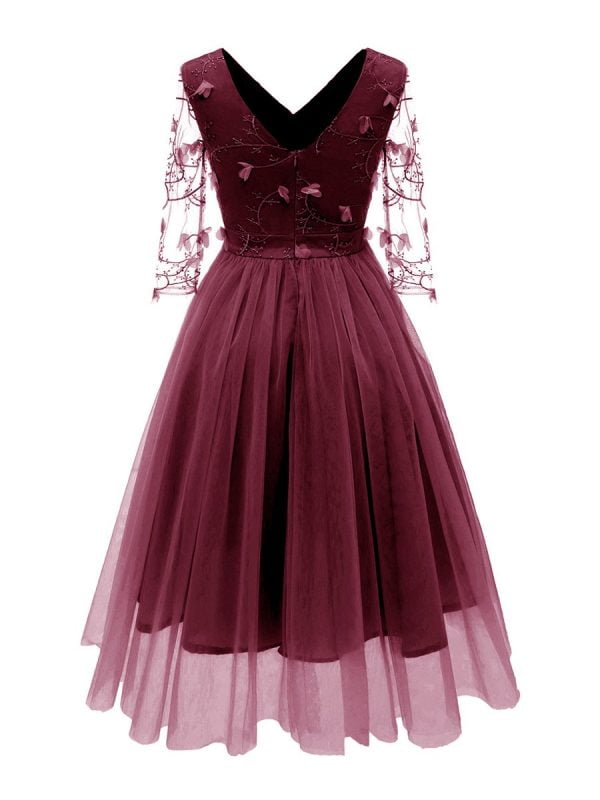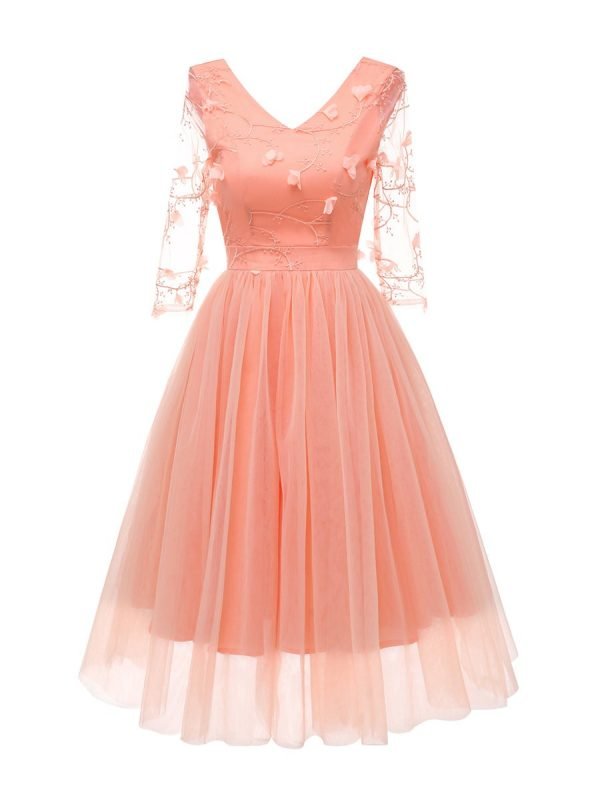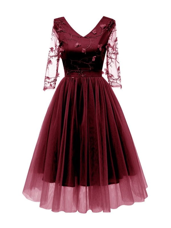 Unique 3D Flower Embroidery Design Add Extra Elegance to This Dress. MissFox’s Lace Dress offers you