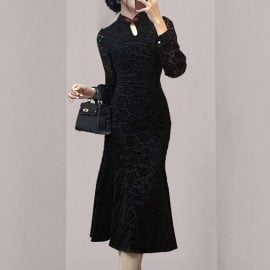 The combination of exquisite lace embroidery and classic cheongsam makes this dress both retro and fashionable; The slim design and fishtail hem perfectly show your body curve;
