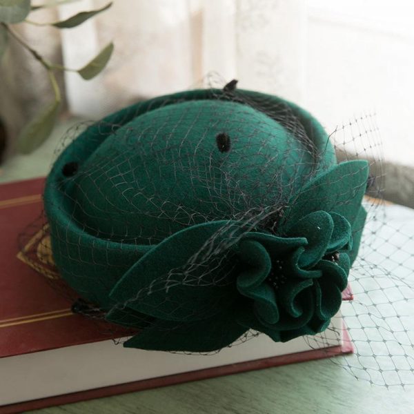 Pillbox Hats Vintage Mesh Flowers Decoration Wool Hats For Wedding