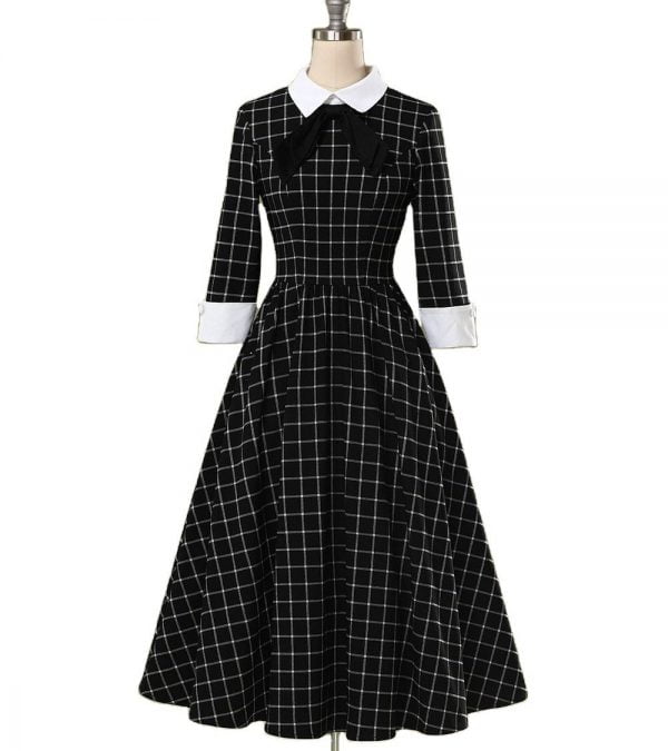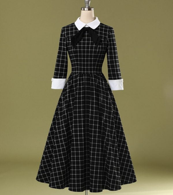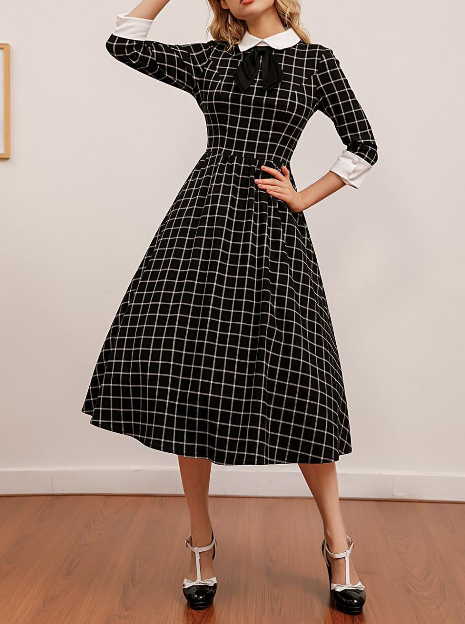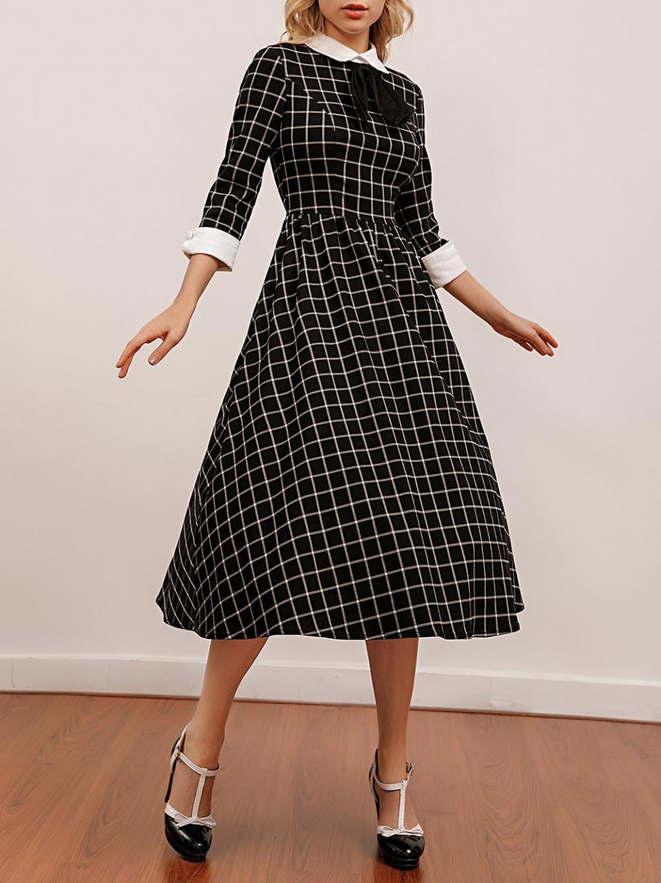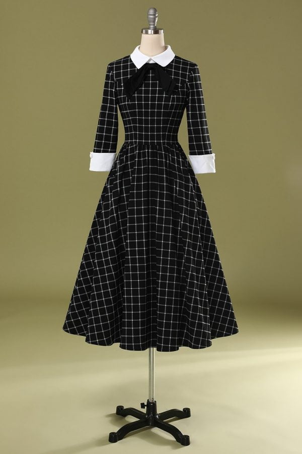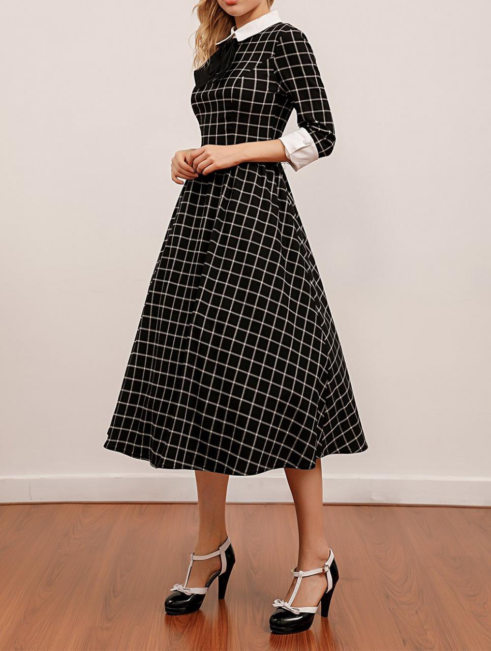 1950s Swing Dress Plaid Dresses Patchwork Tea Party Dress