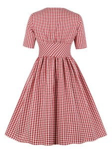 Plaid Dress V Neck Half Sleeve Vintage Midi Dress