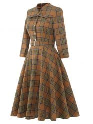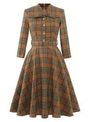 1950s Dress for Women Bowknot-neck Plaid Dress