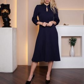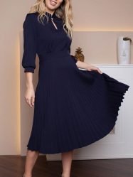 The unique hollow design on the front adds a different charm to this solid color dress; the pleated dress not only makes you cuter but also hides the fat on your legs. making you elegant and charming;