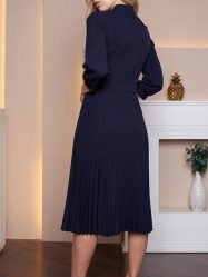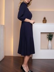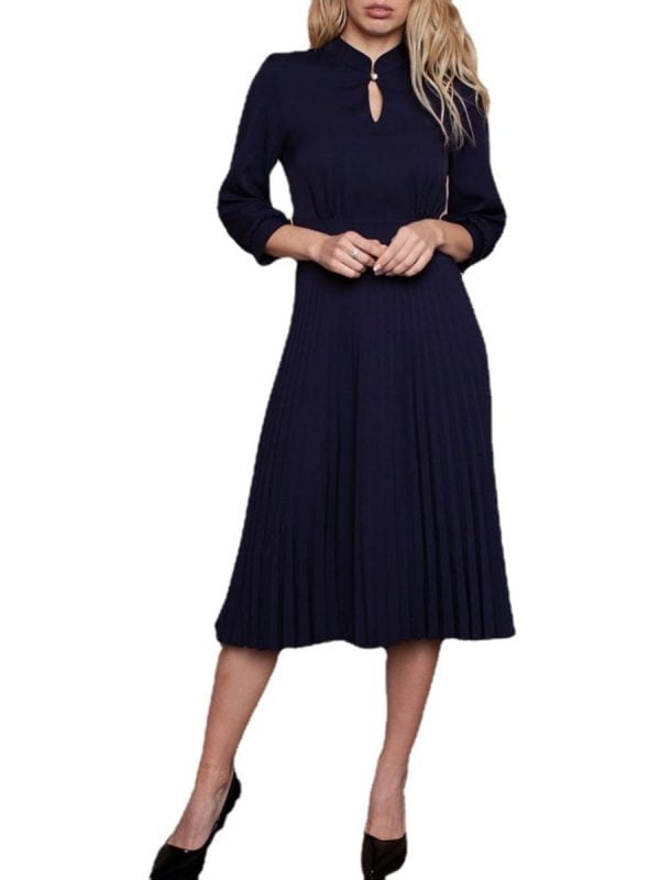 Pleated Dress Hepburn Style Hollow Neck Lantern Three-quarter Sleeve Swing Dress