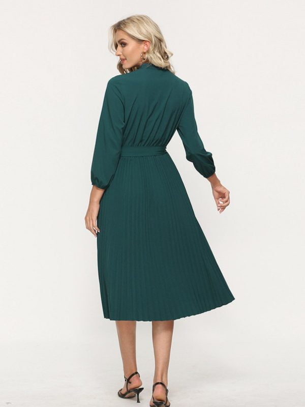 The front single-breasted design and belt are retro and fashionable; the classic pleated dress with lantern sleeves makes this dress unique and never outdated;