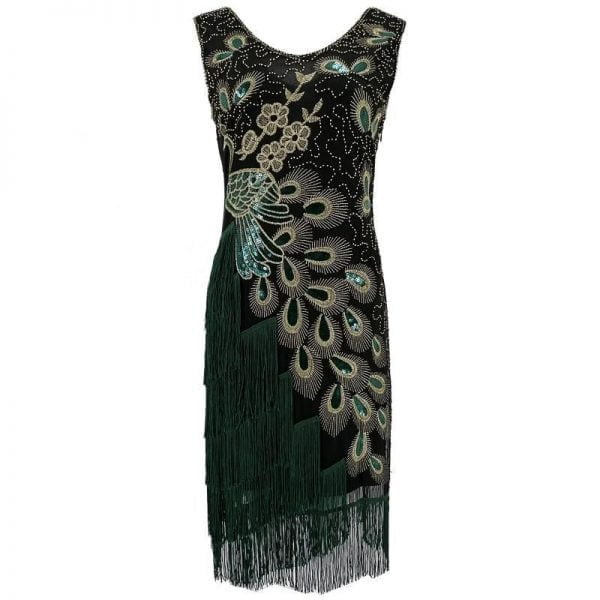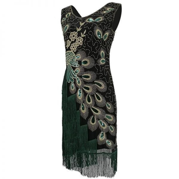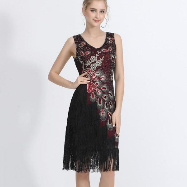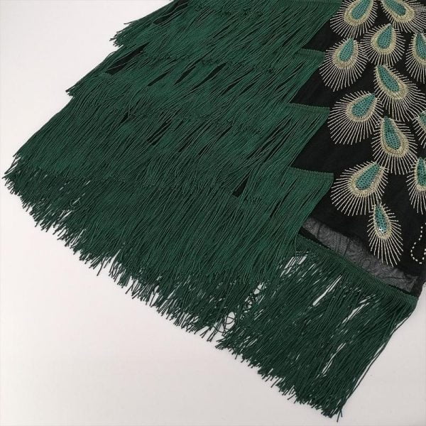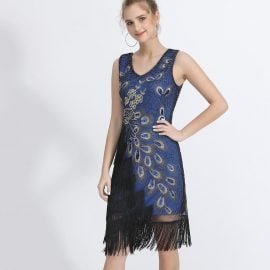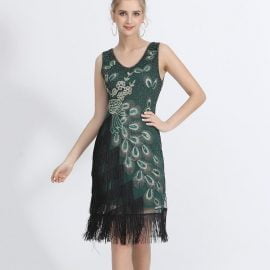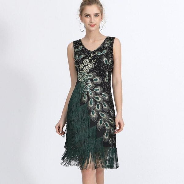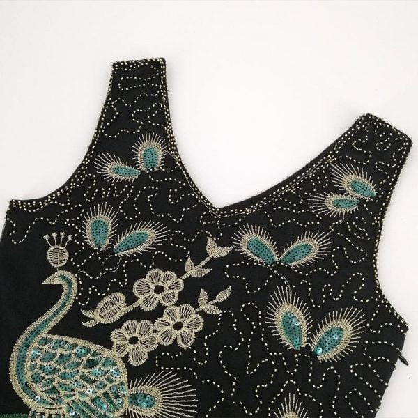 Plus Size Women 1920s Flapper Dress Vintage V-Neck Peacock Embroidery Great Gatsby Dress