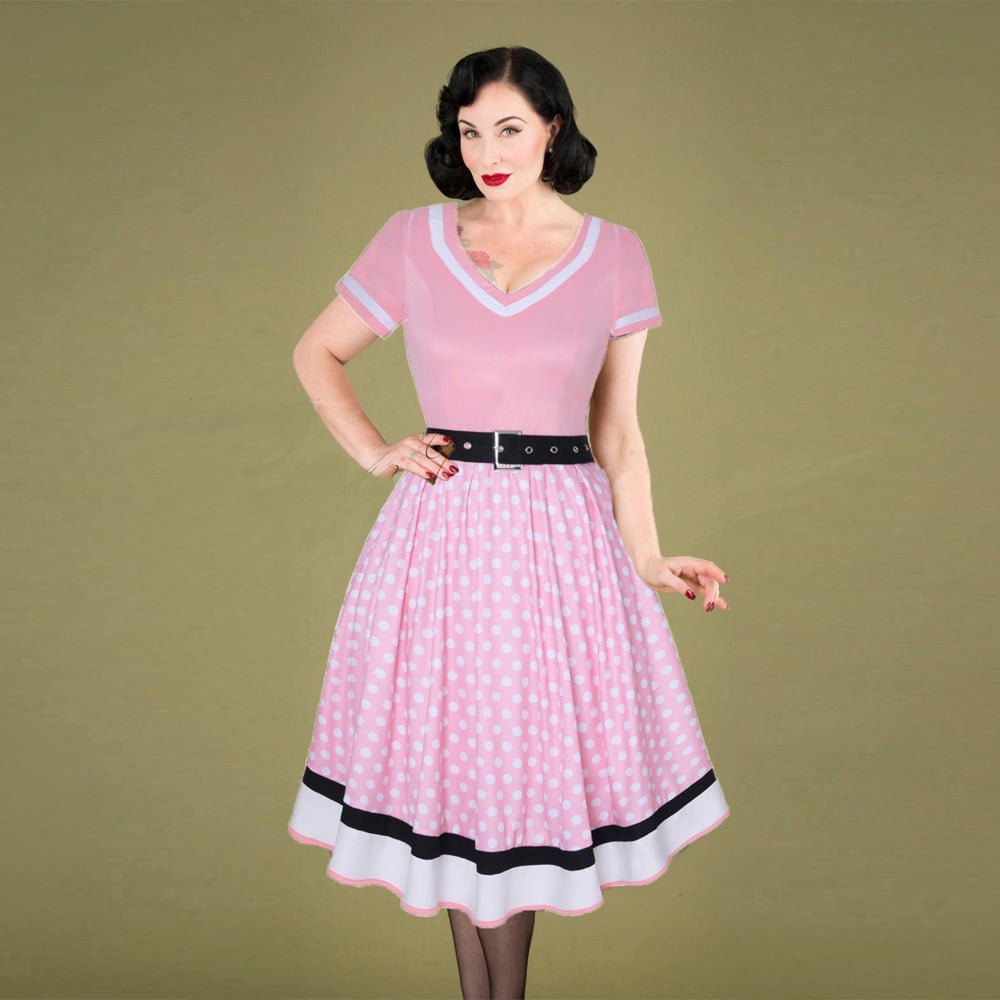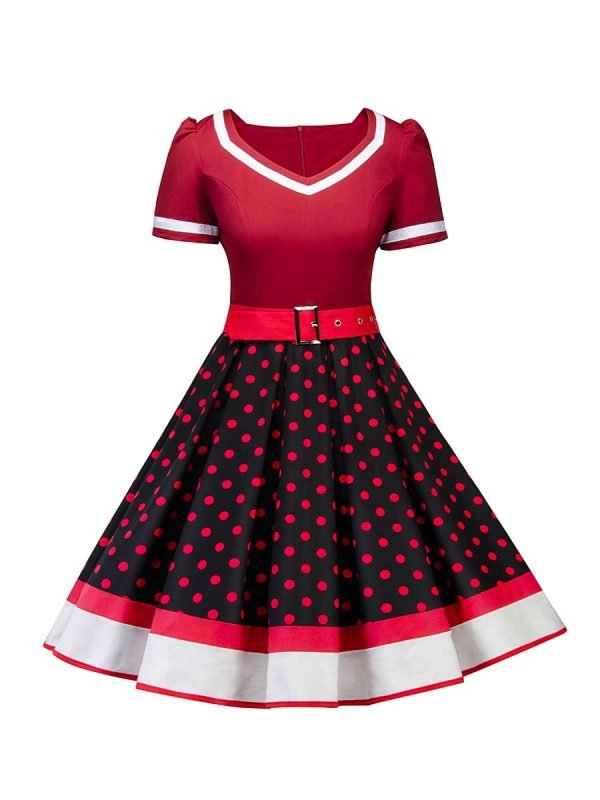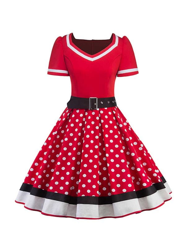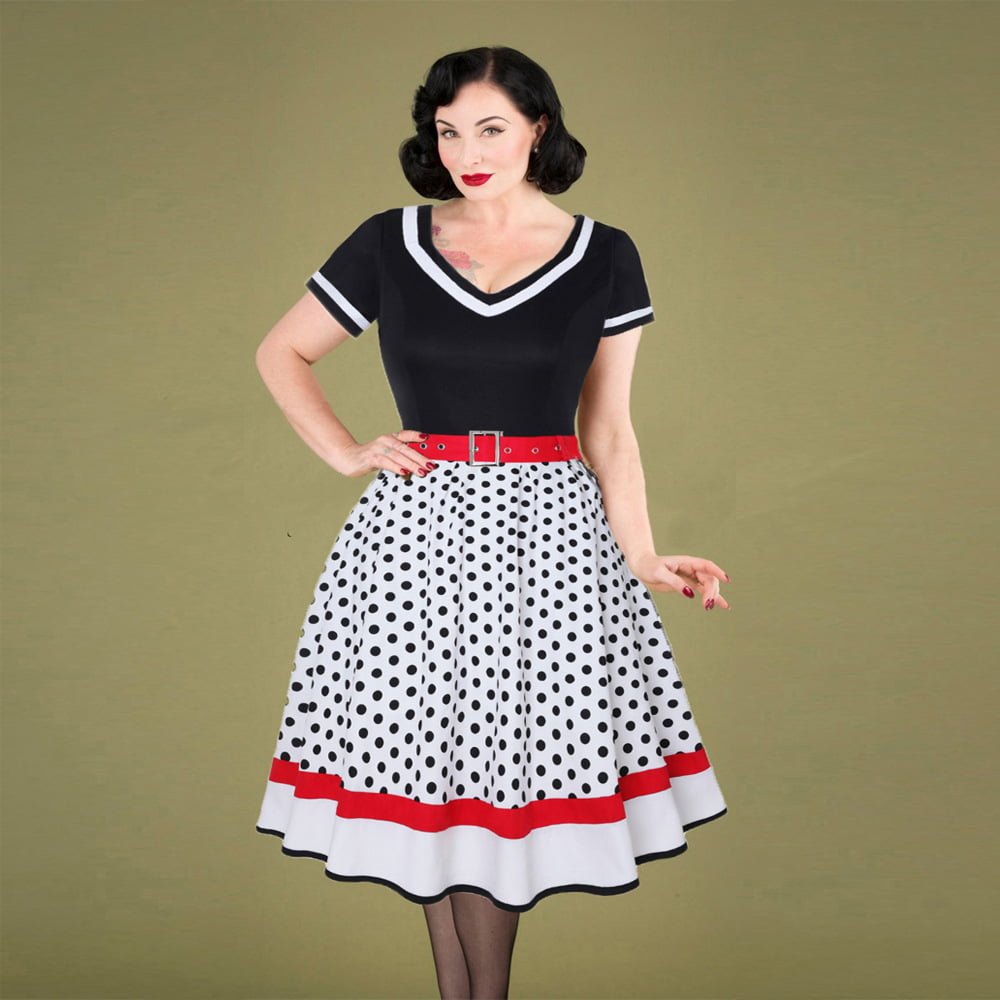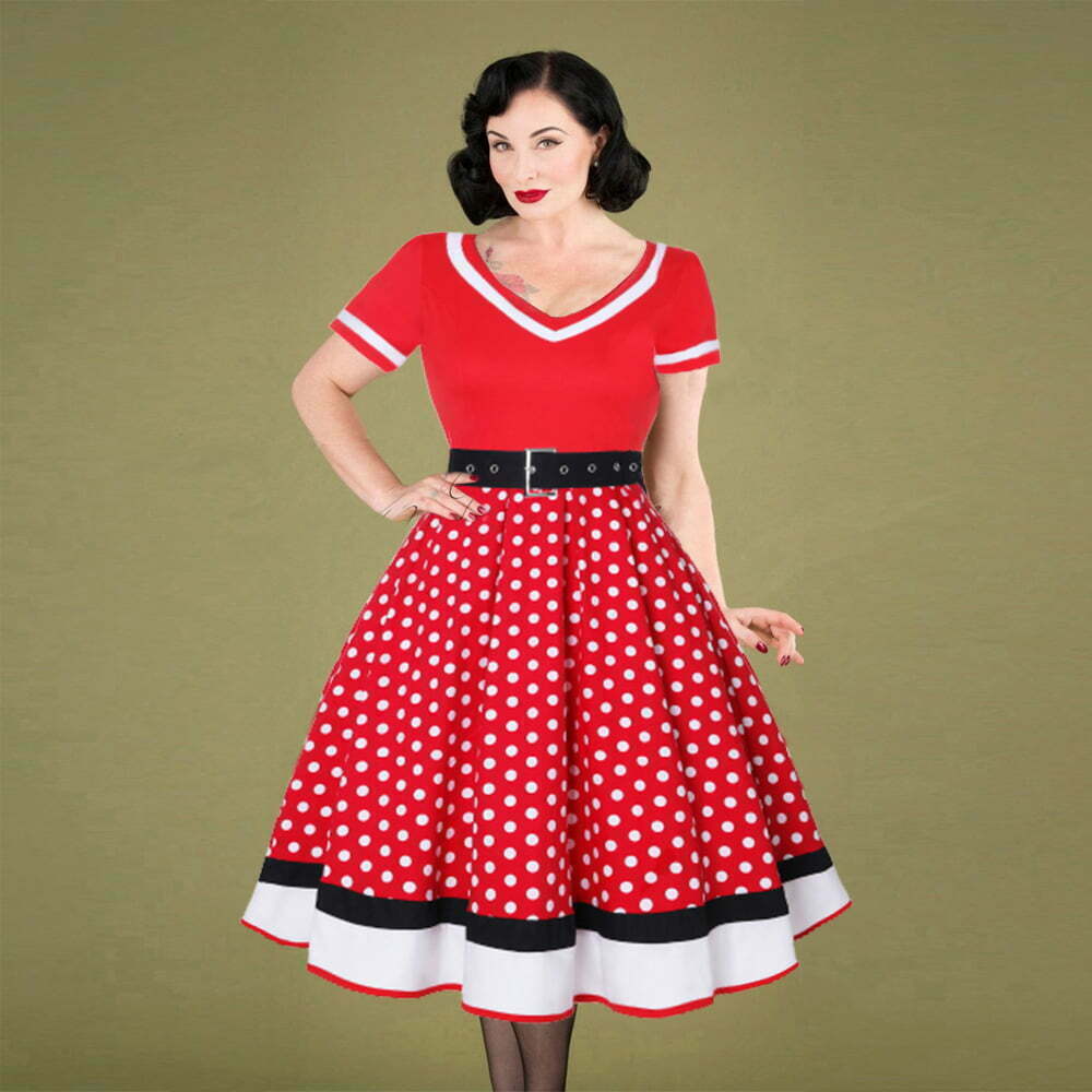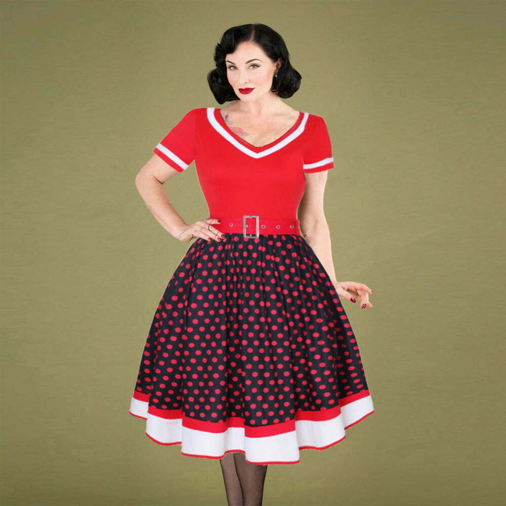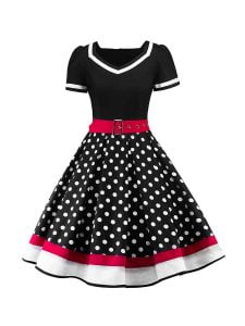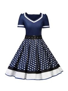 Polka Dot Dress 1950s Pin Up Swing Dress With Belt