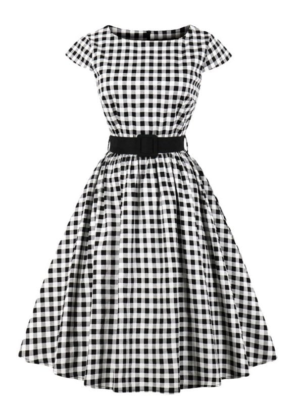 aline-dress-plaid-pattern-vintage-style-dress-for-women
