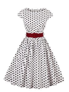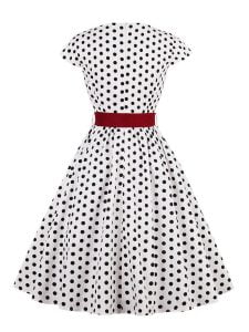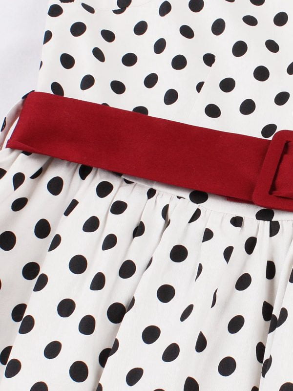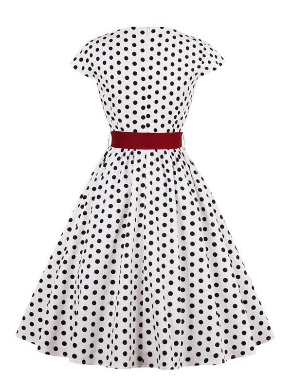 Polka Dot Dress Belt Design Vintage Style Dress for Women
