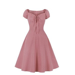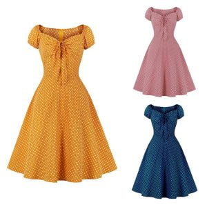 polka-dot-dress-retro-style-square-collar-drawstrings-big-swing-dresses