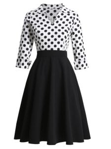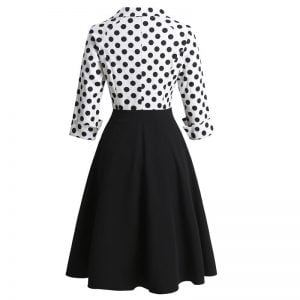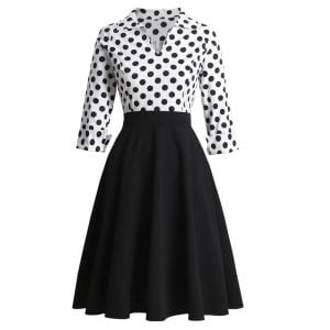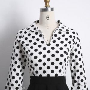 Design: with turn-down collar. long sleeve. polka dot pattern. and high waist design. which all make you look more elegant and outstanding on formal occasion;