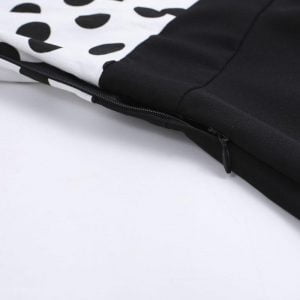 Polka Dot Dresses Elegant Long Sleeve High Waist Knee Length Dress
