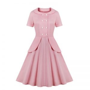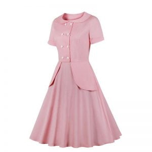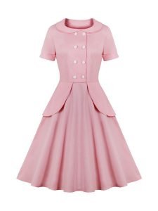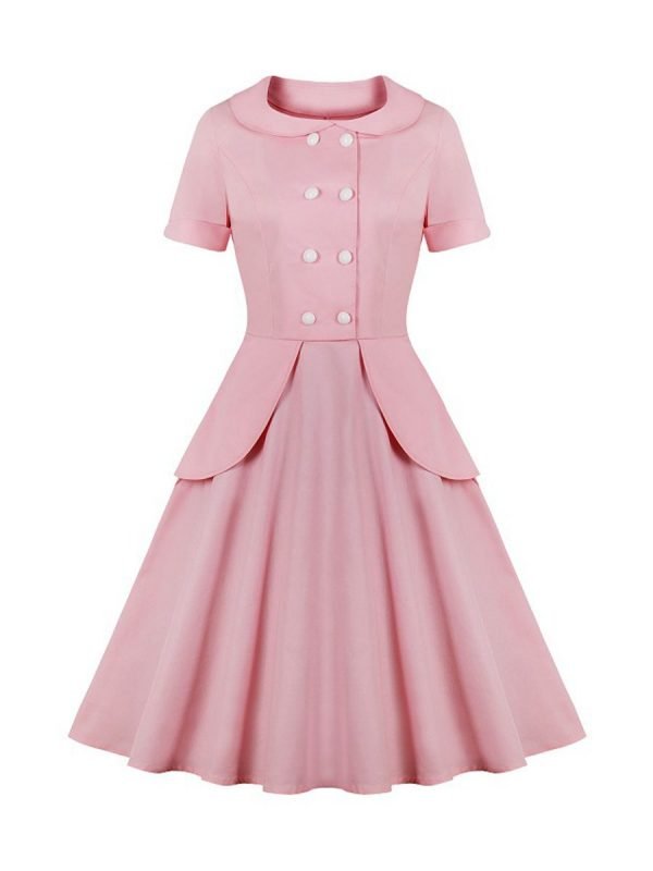 Short-sleeve Pink Dress Peter Pan Collar Retro Dress Swing Dress