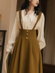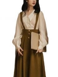 The classic shirt and long skirt match make you look mature and steady; The single-breasted decoration on the front of the skirt makes this skirt more distinctive; Adjustable shoulder straps meet the needs of different groups of people;