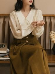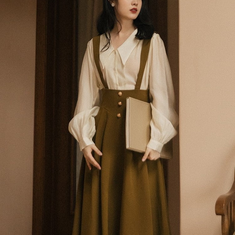 Skirt Suit Vintage Shirt Adjustable Strap Maxi Skirt Two Piece Set