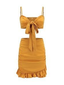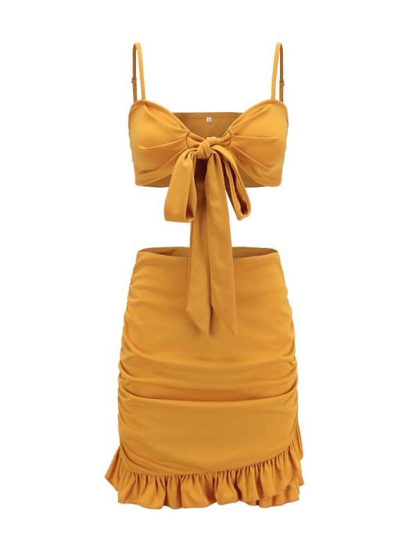 Skirts Suits For Women Strapless Vest Bownot Ruffled Hip-wrapped Dress