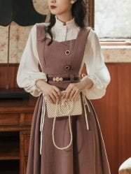 Skirts Suits Stand-up Collar Lantern Sleeve Lace-up Shirt Strap Vintage Skirts