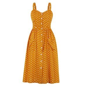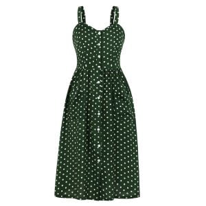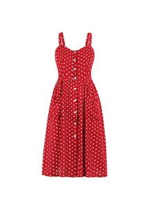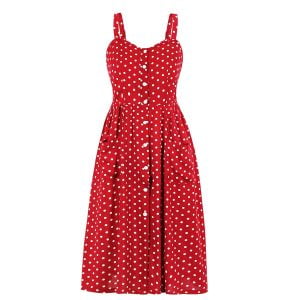 Categories: 1950s Dresses, Polka Dot Dress, Spaghetti Strap Dress