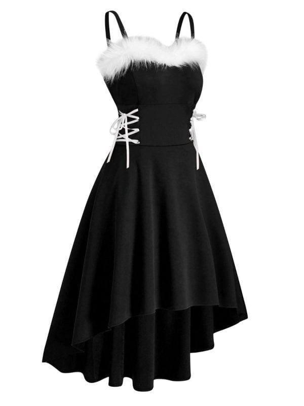 Spaghetti Strap Dress High Low Lace-up Plus Size Christmas Dresses